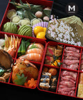 • Tier 1: From the Sea 海の幸 – Featuring premium seafood such as prawn, herring roe, and fish cakes that symbolise abundance and joy.